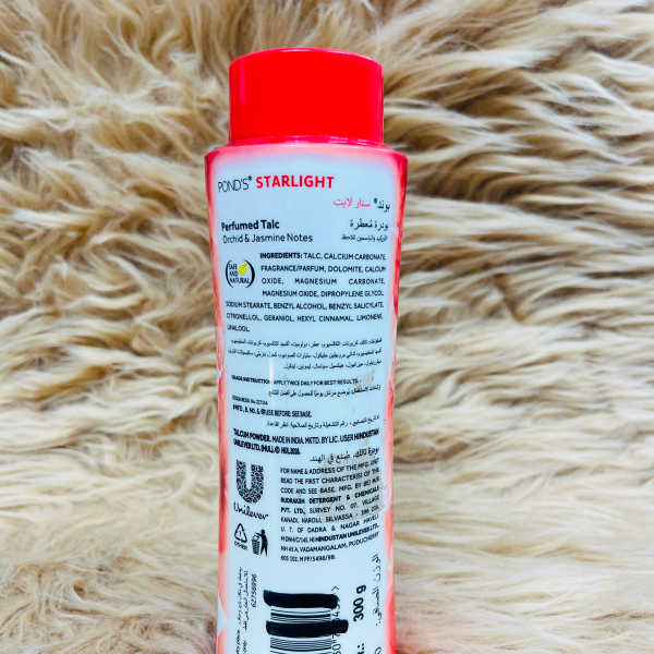 Radiant Beauty and Fragrance Enhance your daily beauty routine with Pond’s Starlight Perfumed Talc. This imported luxury powder blends superior moisture absorption with a captivating, glamorous fragrance.